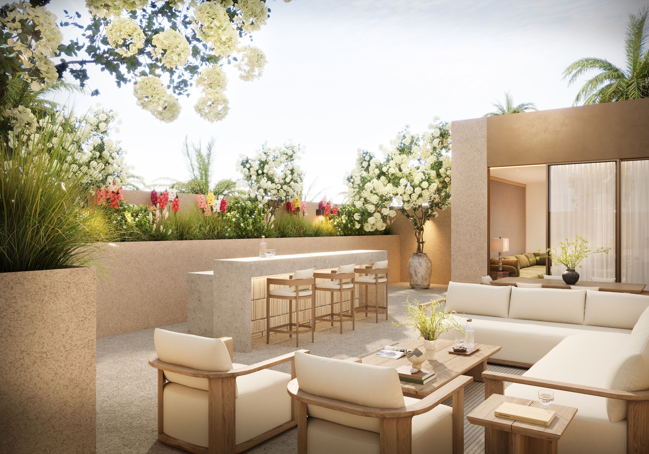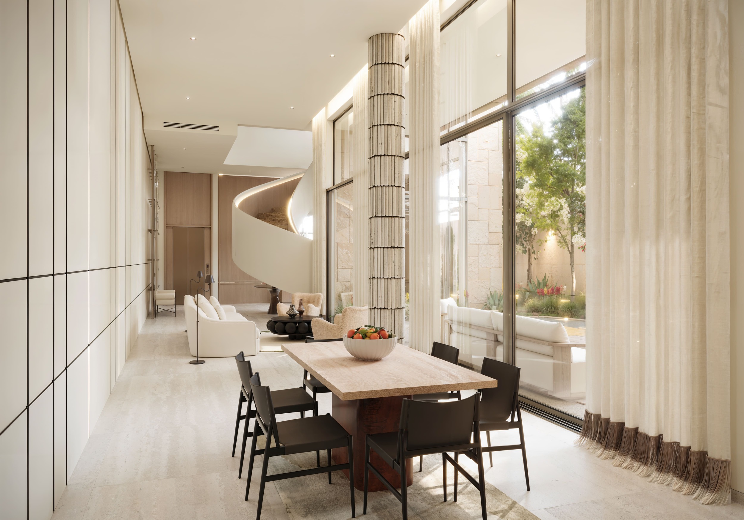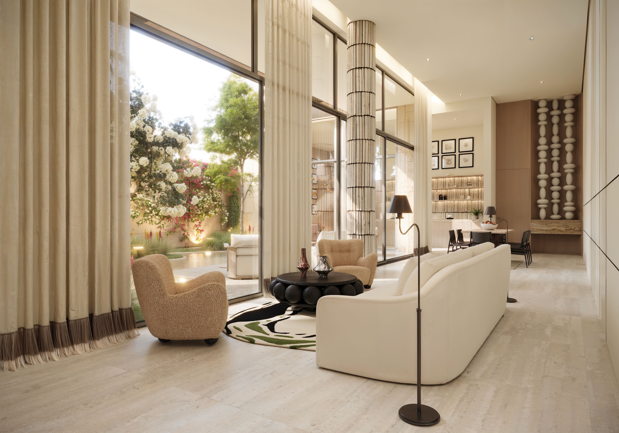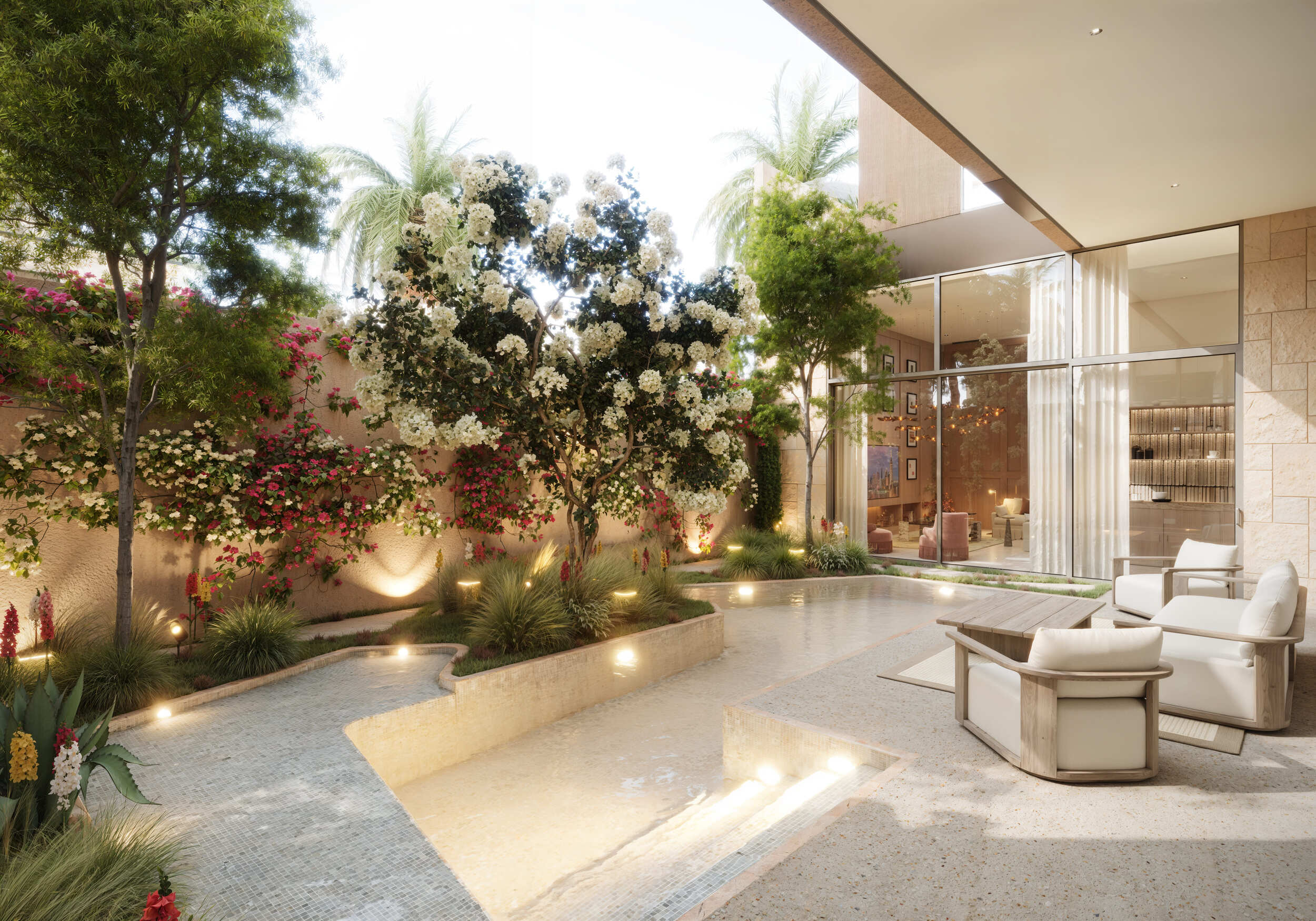 تتضمن الفيلا خمس مساحات معيشية تمتزج فيها المساحات الداخلية والخارجية بسلاسة. تحتوي على أربع غرف نوم، بما في ذلك جناح رئيسي يضم غرفة ملابس وحمامين بتصميم مزدوج. كما توفر الفيلا مسبحًا ومنطقة ترفيهية على السطح. ويعزز المطبخ المخصص للخدمة بالإضافه إلى المطابخ الصغيرة في كل طابق من مستوى الكفاءة والوظائف العملية في المنزل. تحتوي كل فيلا على ثلاث مواقف سيارات مخصصة.