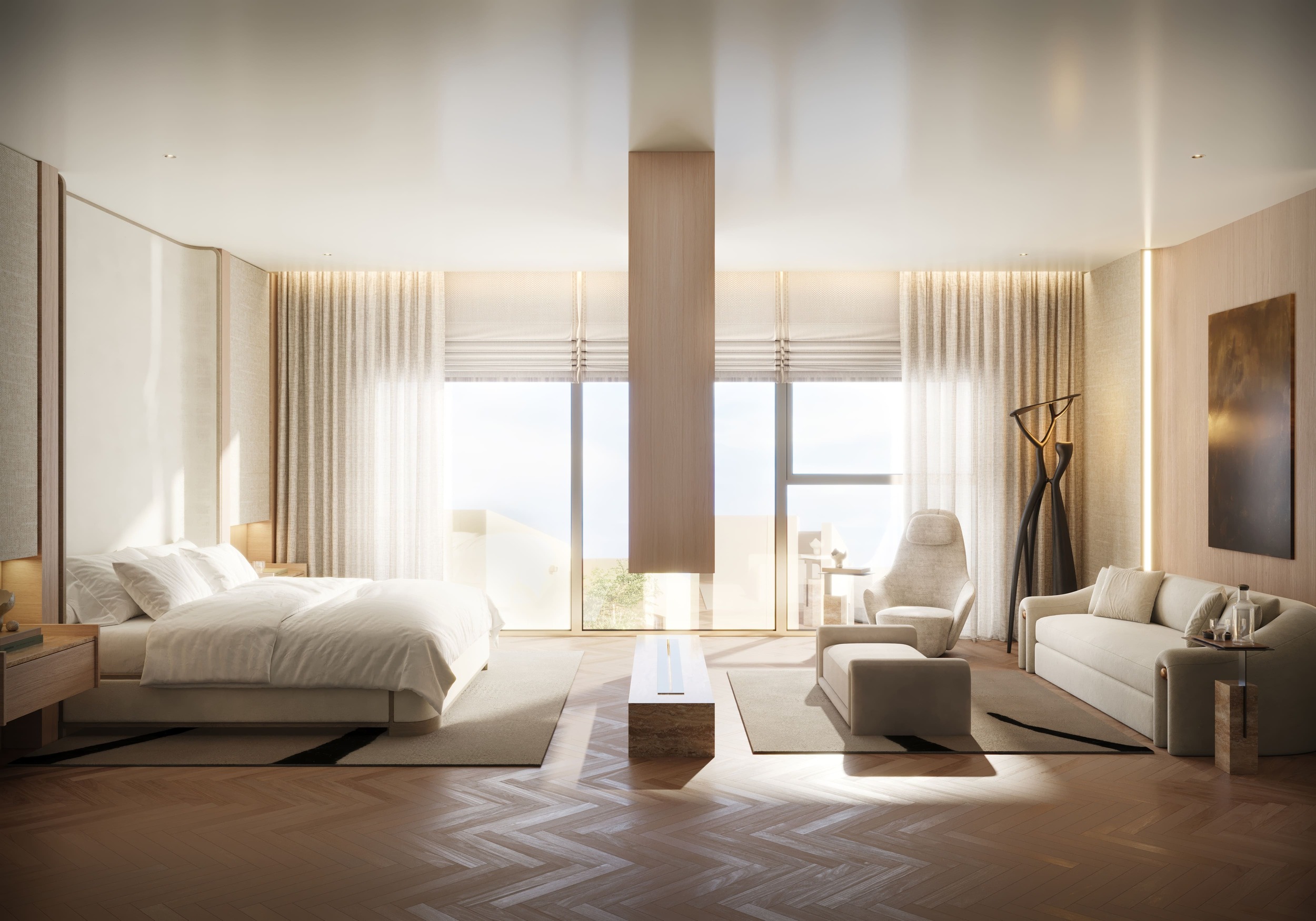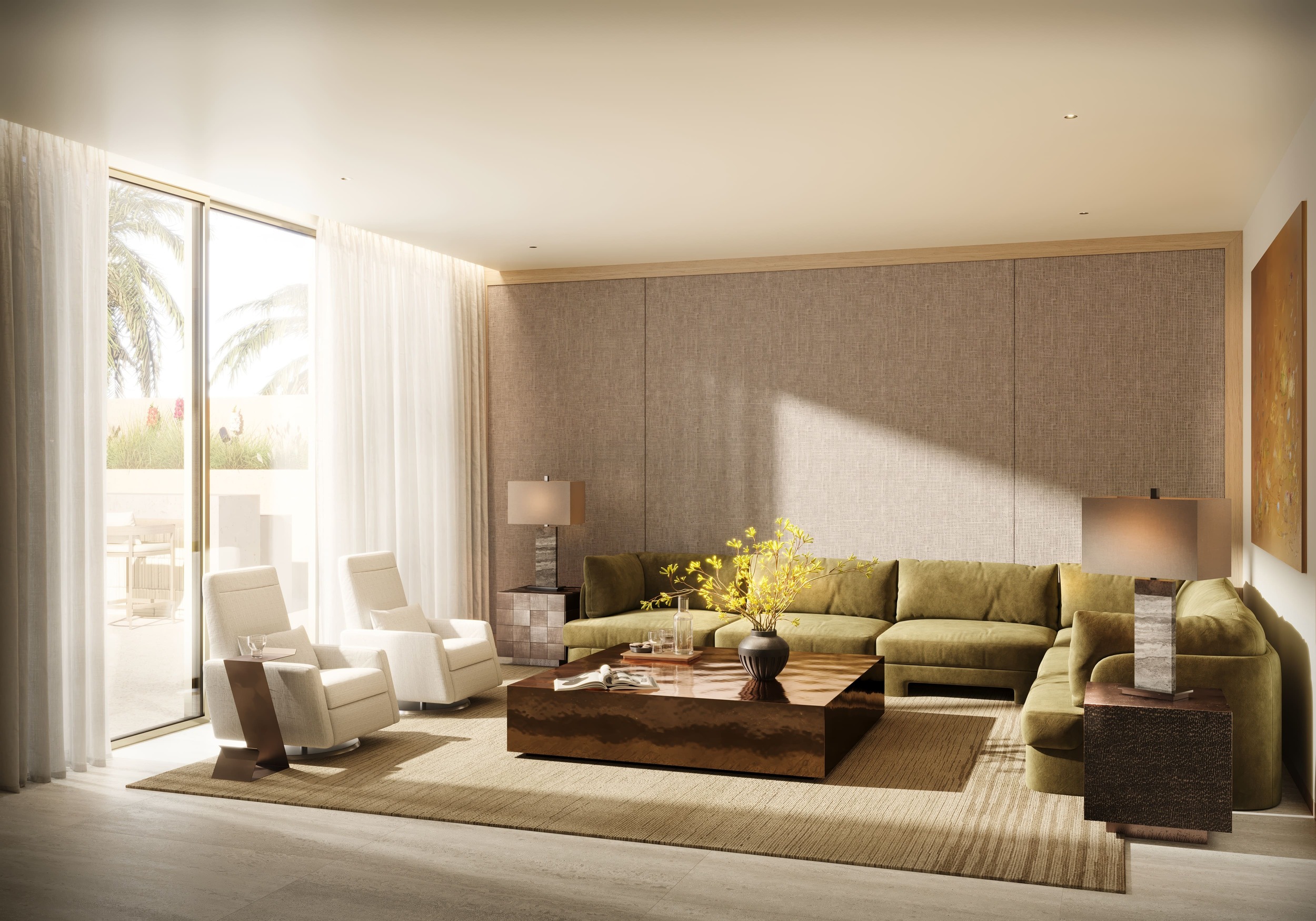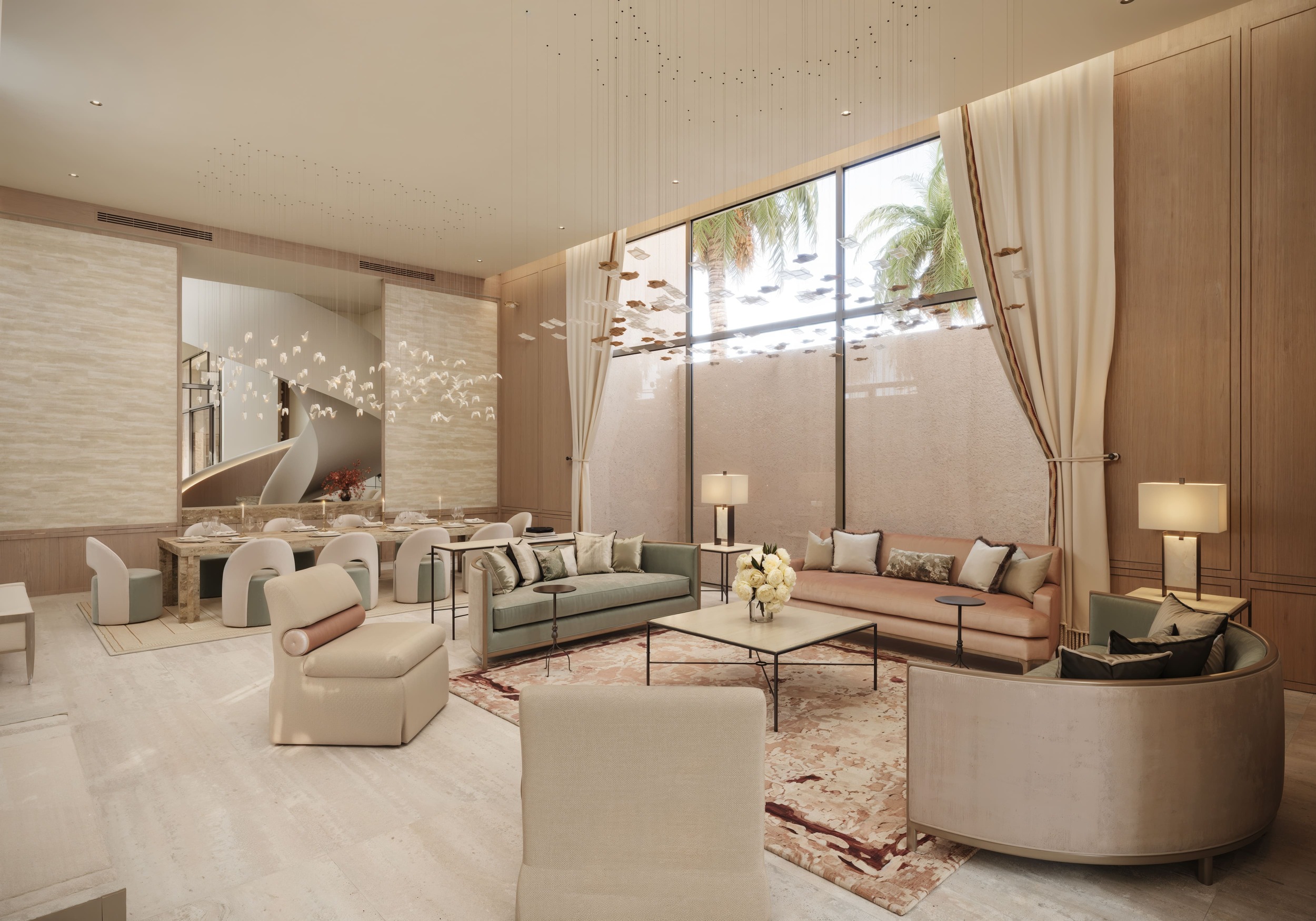 تتضمن الفيلا خمس مساحات معيشية تمتزج فيها المساحات الداخلية والخارجية بسلاسة. تحتوي على أربع غرف نوم، بما في ذلك جناح رئيسي يضم غرفة ملابس وحمامين بتصميم مزدوج. كما توفر الفيلا مسبحًا ومنطقة ترفيهية على السطح. ويعزز المطبخ المخصص للخدمة بالإضافه إلى المطابخ الصغيرة في كل طابق من مستوى الكفاءة والوظائف العملية في المنزل. تحتوي كل فيلا على ثلاث مواقف سيارات مخصصة.