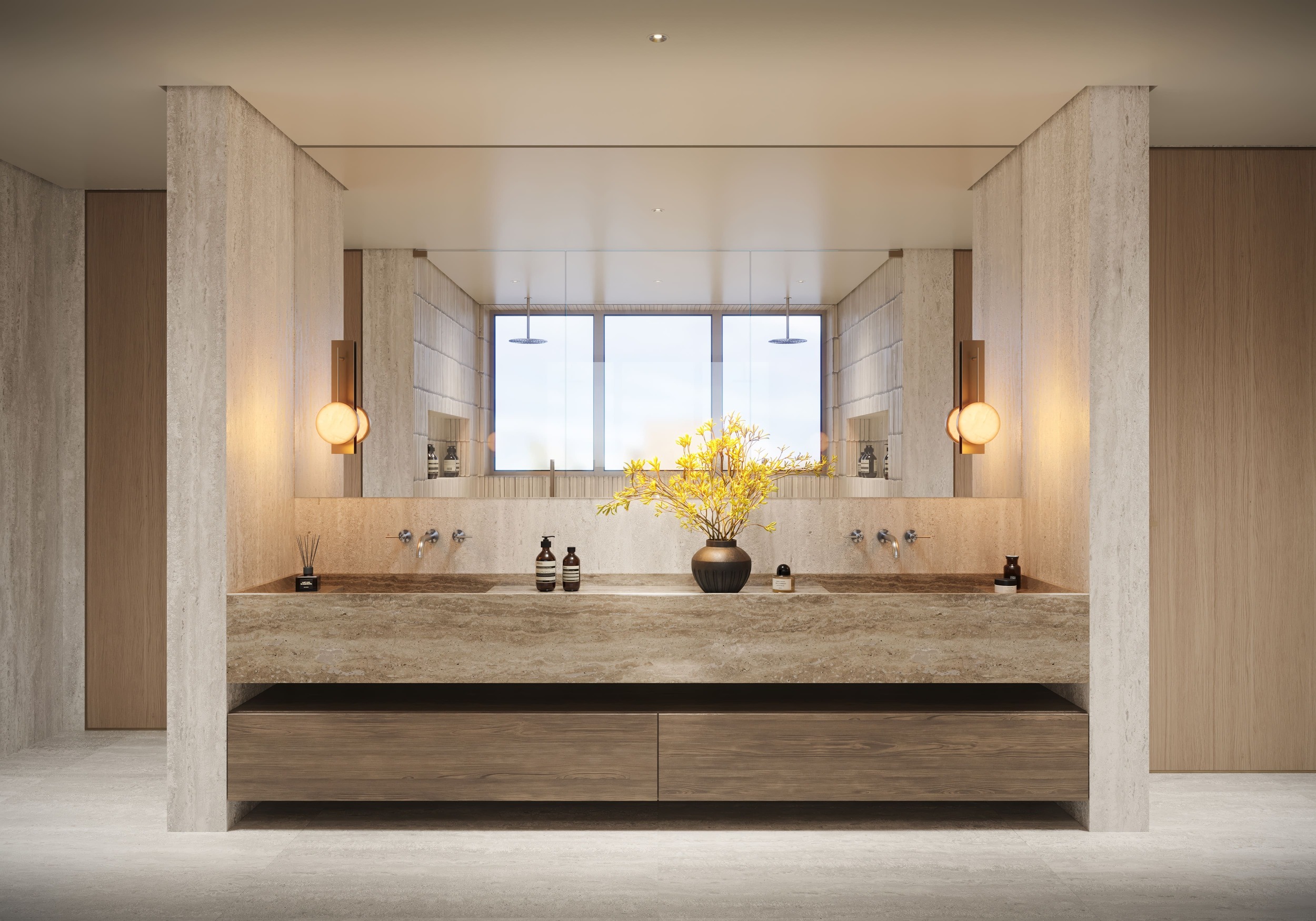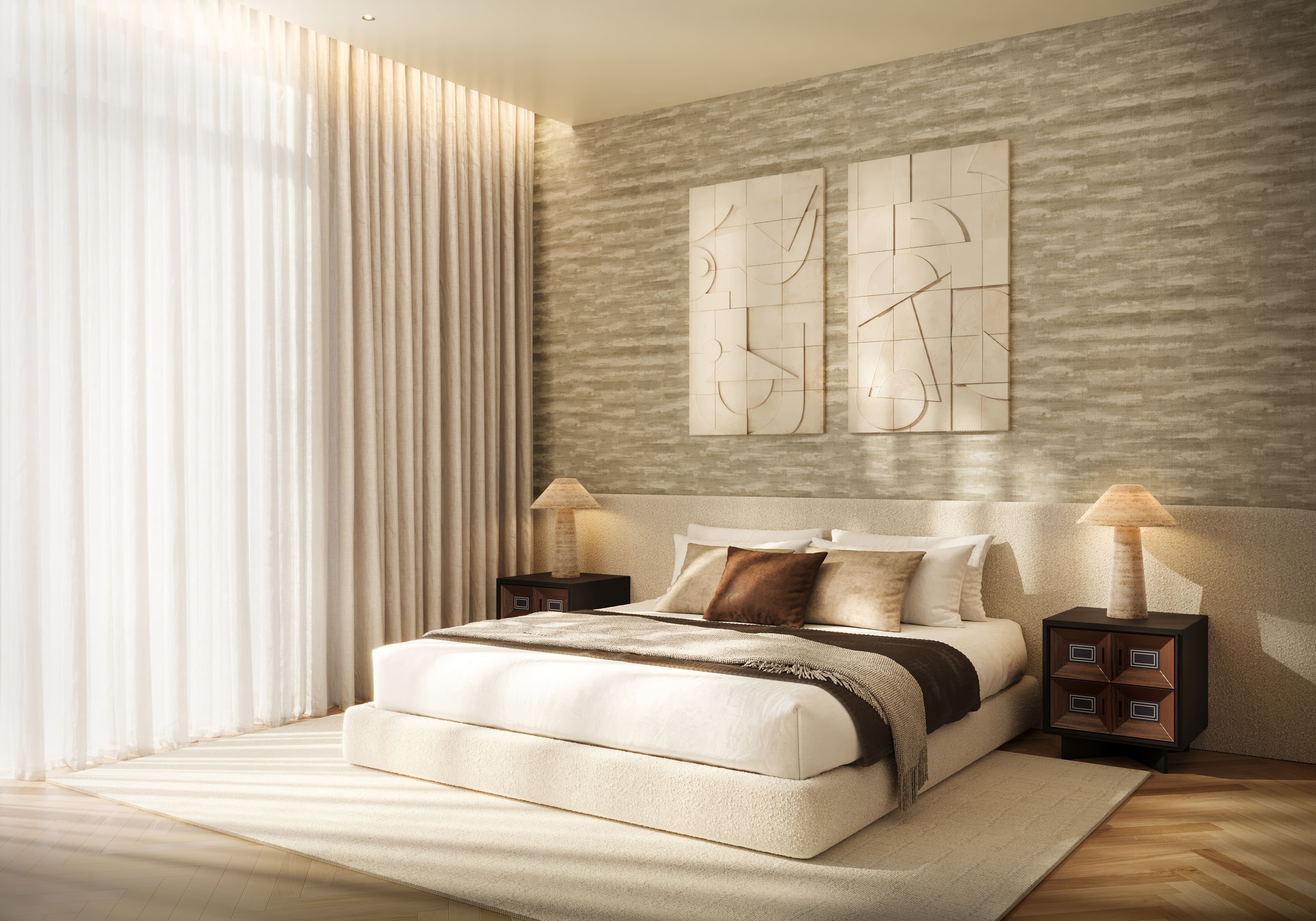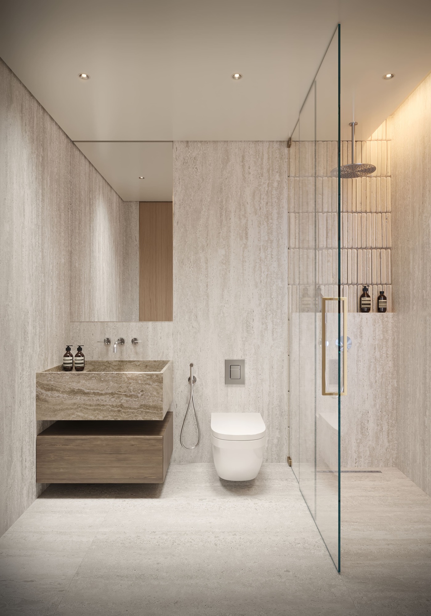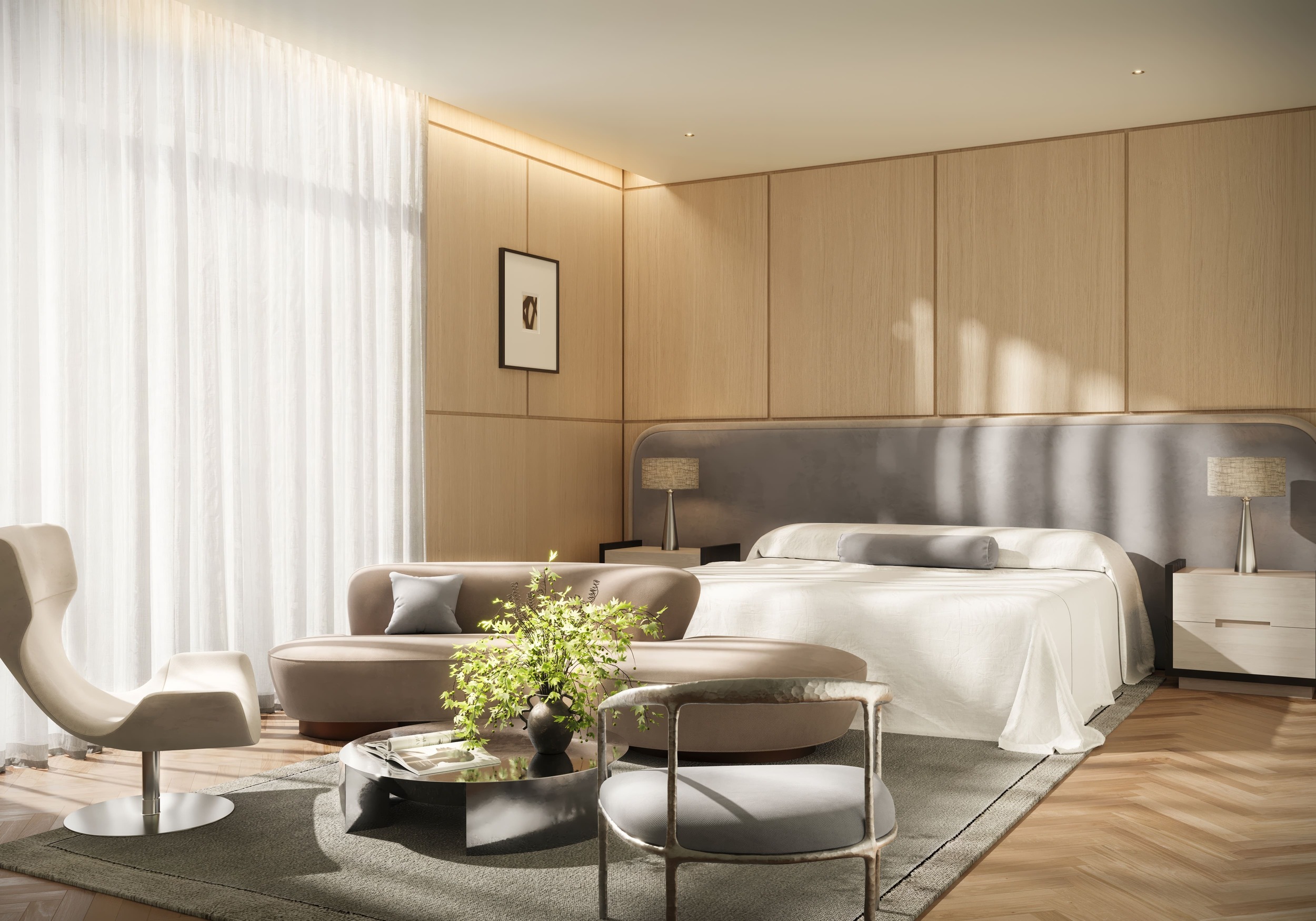 تتضمن الفيلا خمس مساحات معيشية تمتزج فيها المساحات الداخلية والخارجية بسلاسة. تحتوي على أربع غرف نوم، بما في ذلك جناح رئيسي يضم غرفة ملابس وحمامين بتصميم مزدوج. كما توفر الفيلا مسبحًا ومنطقة ترفيهية على السطح. ويعزز المطبخ المخصص للخدمة بالإضافه إلى المطابخ الصغيرة في كل طابق من مستوى الكفاءة والوظائف العملية في المنزل. تحتوي كل فيلا على ثلاث مواقف سيارات مخصصة.